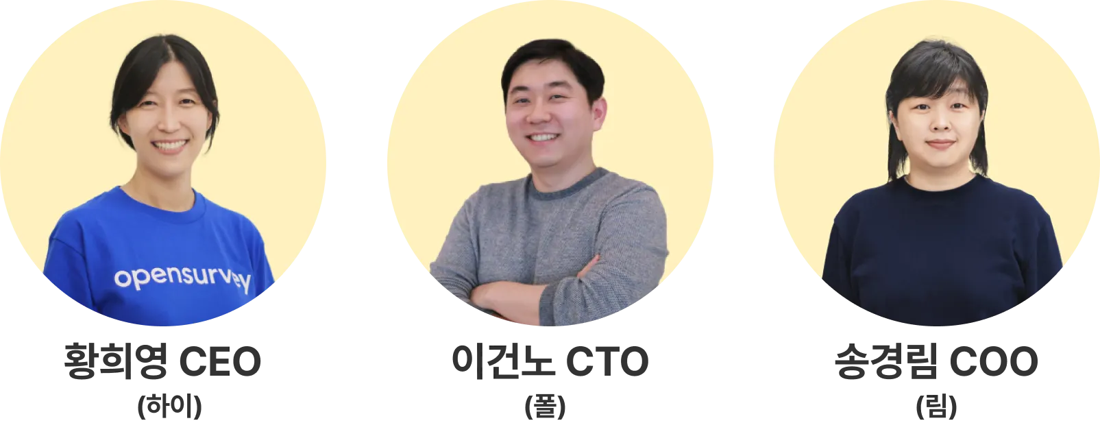 안녕하세요. 오픈서베이 대표 황희영입니다. 오픈서베이는 닉네임을 쓰는데 저는 이니셜을 따서 '하이(HY)'라는 닉네임을 쓰고 있어요.